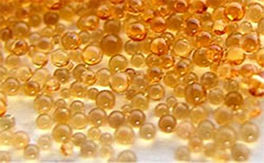 イオン交換樹脂は、プラスチックや化学繊維と同じく石油由来の有機合成物質で、直径が0.5㎜程度の半透明の非常にきれいな真球の物質です。外観は、魚卵であるタラコの様な、ガラス状の物質です。日常的に見かけることはありませんが、様々な用途で工業を支えている非常に重要な化学物質です。